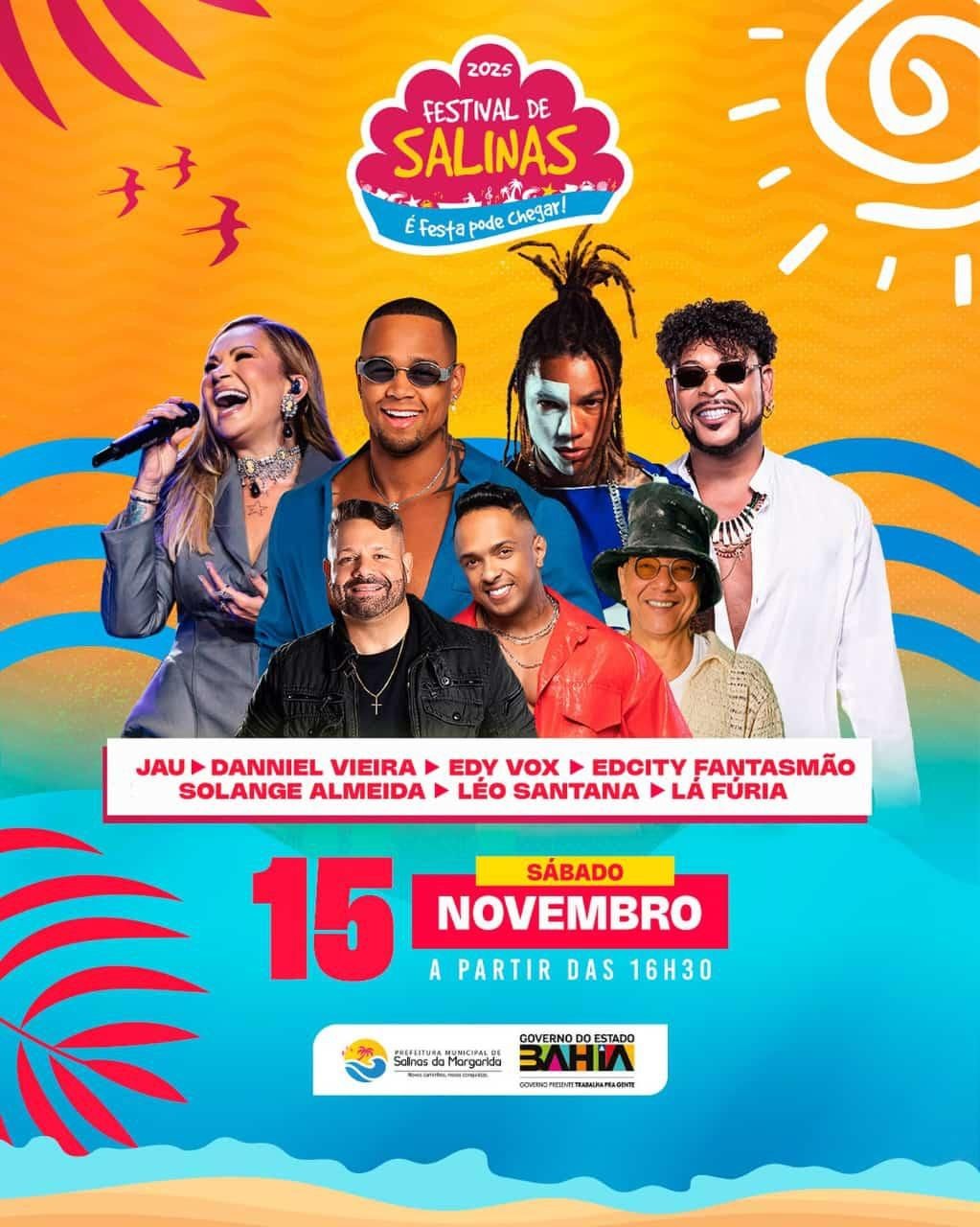 Com uma programação eclética, o evento reúne grandes nomes da música baiana e nacional, consolidando Salinas como um dos principais destinos turísticos e culturais do verão baiano.