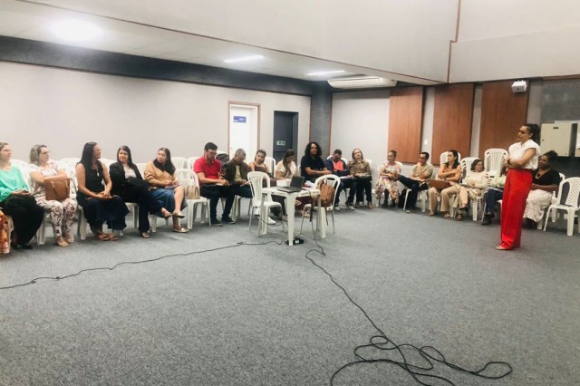 A formadora regional Jeane Mota foi responsável por conduzir a formação desta terça-feira, que teve como objetivo aprofundar temáticas pensadas coletivamente com base nas realidades locais dos municípios envolvidos.