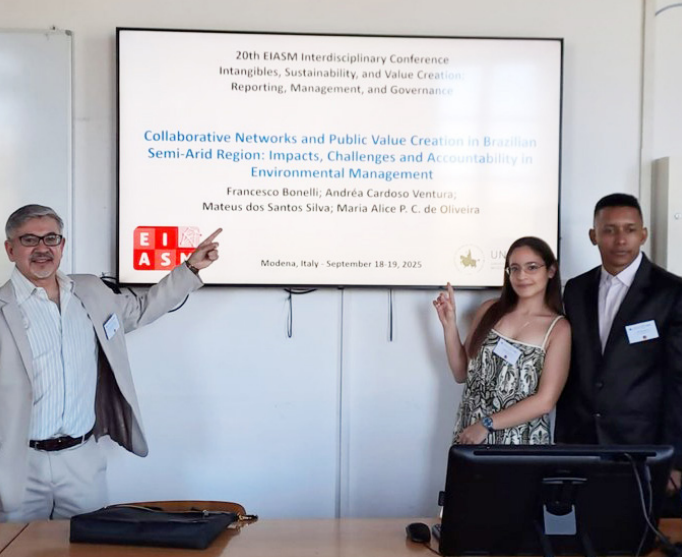 O Instituto Federal de Educação, Ciência e Tecnologia da Bahia (IFBA) – Campus Feira de Santana – marcou presença internacional na 20ª EIASM Interdisciplinary Conference – Intangibles, Sustainability and Value Creation: Reporting, Management and Governance, realizada nos dias 18 e 19 de setembro, em Modena, na Itália. Os estudantes do Bacharelado em Sistemas de Informação, Maria Alice Pimentel de Oliveira e Mateus dos Santos Silva, e o professor Francesco Bonelli apresentaram o trabalho "Redes Colaborativas e Criação de Valor Público, no Semiárido Brasileiro: Impactos, Desafios e Responsabilização na Gestão Ambiental".