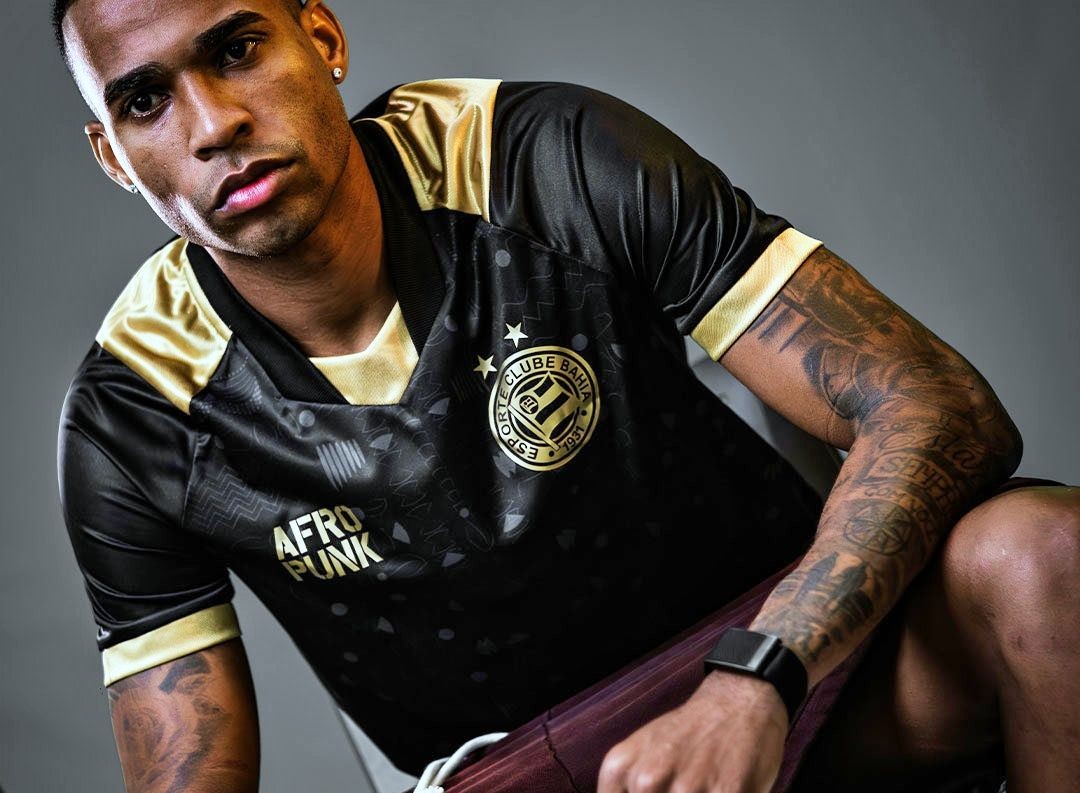 O Bahia apresentou nesta quinta-feira sua nova camisa em parceria com o Festival Afropunk, iniciativa que celebra a cultura negra em sua multiplicidade e potência criativa. O uniforme, de edição limitada, chega às lojas do clube e do site oficial nesta semana e faz parte da programação do Novembro Negro. A peça principal é predominantemente preta, com detalhes dourados que também estampam o escudo, além de uma versão alternativa em branco e dourado.