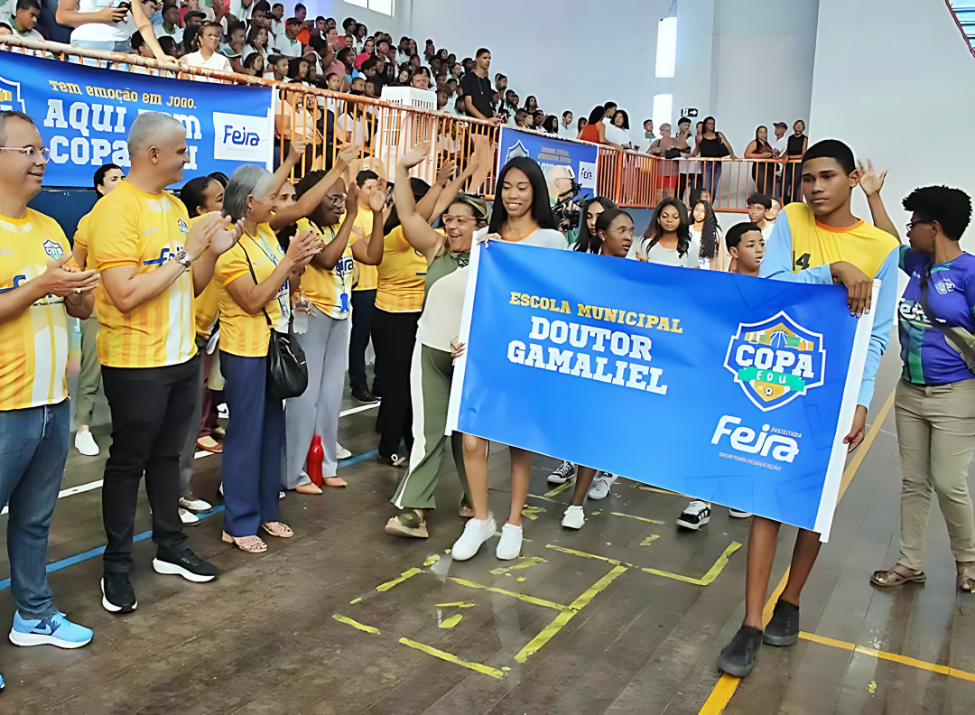 Feira de Santana abriu nesta segunda-feira a primeira edição da Copa EDU, torneio que reúne mais de 15 escolas municipais e promete movimentar o calendário estudantil até o dia 13 de novembro. A cerimônia de abertura, realizada no ginásio da Escola Municipal Castro Alves, contou com hinos, apresentações culturais e um clima contagiante de confraternização. Alunos de 11 a 16 anos, professores e autoridades celebraram o início de uma competição que vai além dos resultados e coloca o esporte no centro da vida escolar.