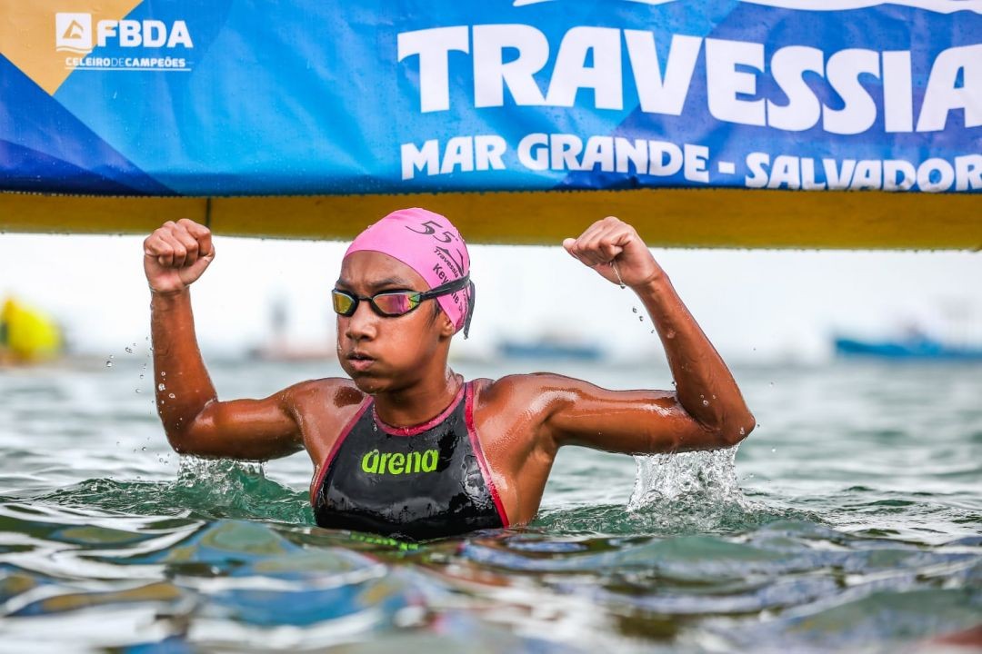 Feira de Santana Notícias 24h - A jovem nadadora feirense Keylane Rodrigues da Silva voltou a confirmar seu talento nas águas abertas. O fenômeno da natação baiana foi um dos grandes destaques do último sábado (29), ao brilhar na tradicional Travessia Mar Grande–Salvador. Keylane conquistou a quarta colocação geral e garantiu o primeiro lugar em sua categoria, em uma edição simbólica que celebrou os 70 anos de uma das provas mais importantes do país.