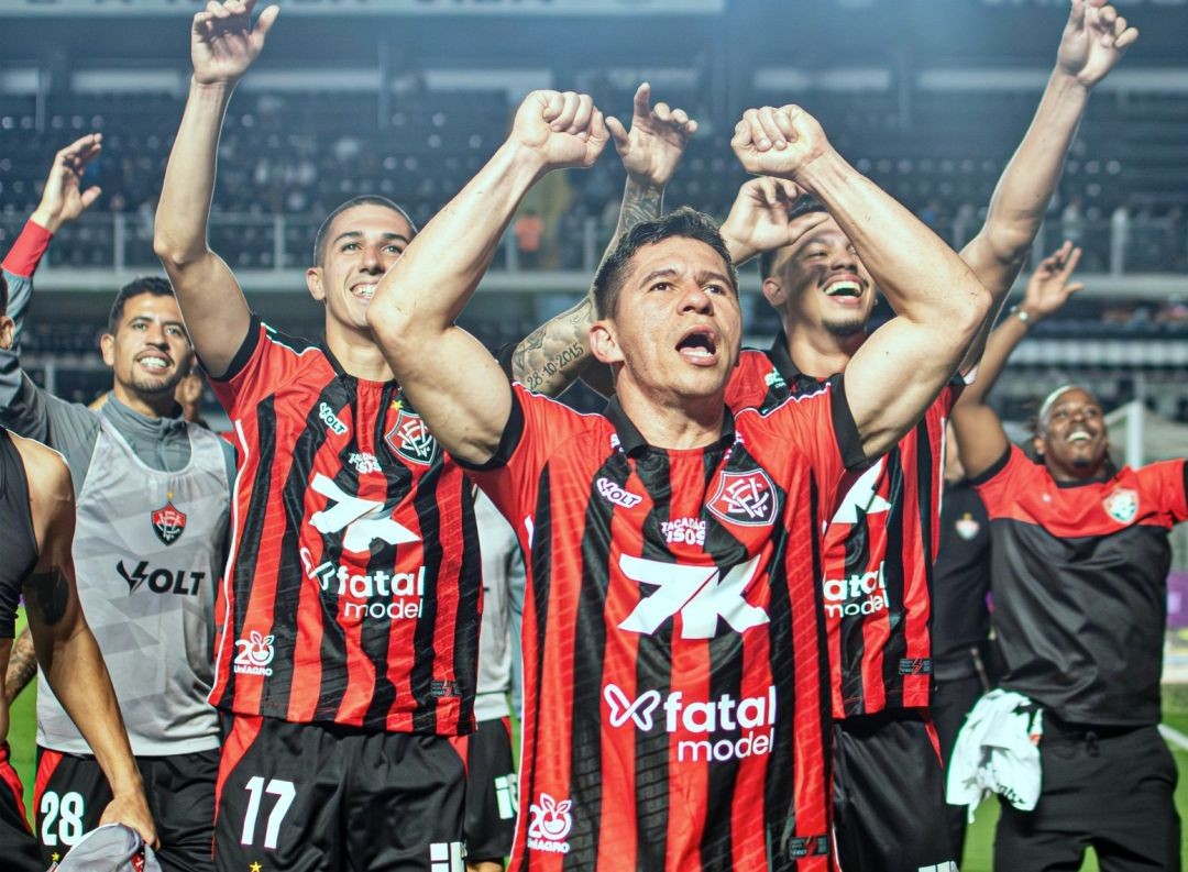 O Vitória respira. O triunfo por 1 a 0 sobre o Santos, na Vila Belmiro, consolidou a reação do time baiano no Campeonato Brasileiro e reacendeu a luta contra o rebaixamento. Foi a terceira vitória nas últimas quatro rodadas, sequência que elevou as chances de permanência de 19,36% para 39,05%, segundo o Gato Mestre. Com 31 pontos, o Rubro-Negro empatou com o próprio Santos, mas segue em 17º por ter uma vitória a menos.