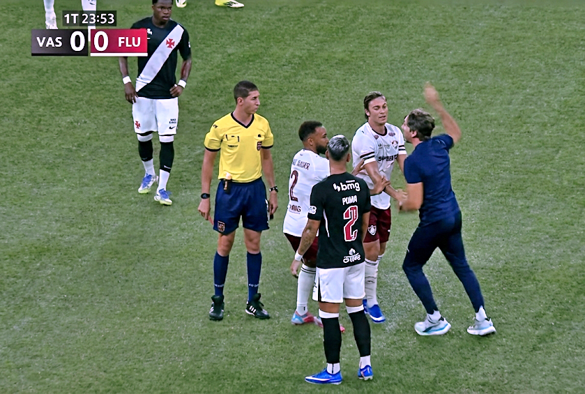 Luis Zubeldía foi expulso ainda no primeiro tempo do clássico entre Vasco e Fluminense e transformou um lance discutível em crise de comportamento. Aos 22 minutos, após reclamar de forma enfática com o árbitro Jodis Nascimento de Souza por um contato envolvendo Lucho Acosta, o técnico recebeu cartão vermelho, invadiu o campo para contestar e precisou ser contido por jogadores do próprio time.