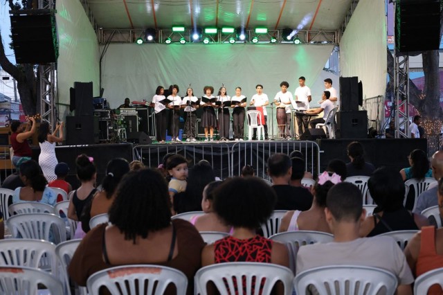 Na sequência, o Grupo de Flauta do CRAS Baraúnas sobe ao palco, apresentando o resultado do trabalho desenvolvido ao longo do ano com os participantes do serviço.