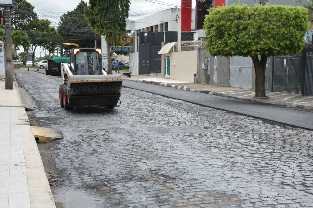 Camadas de asfalto à quente dão lugar aos paralelepípedos