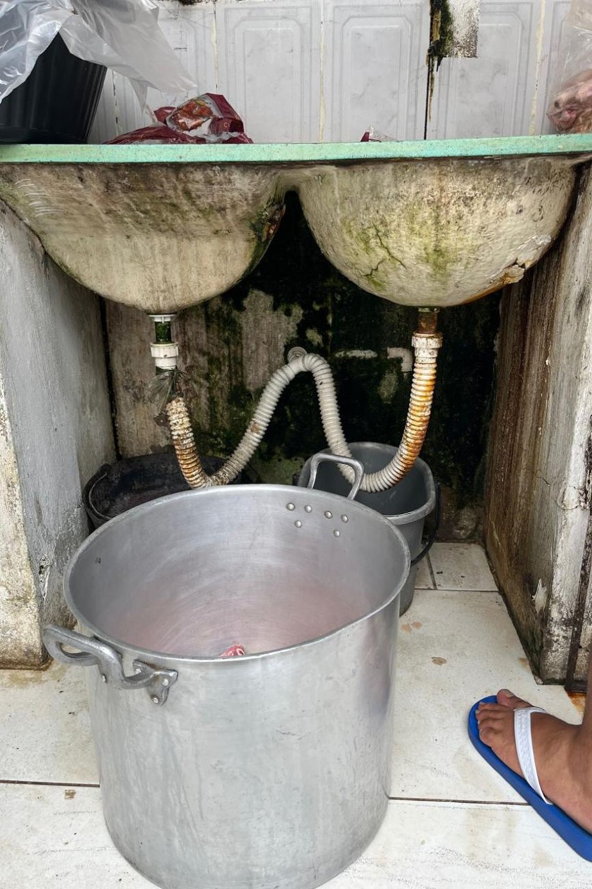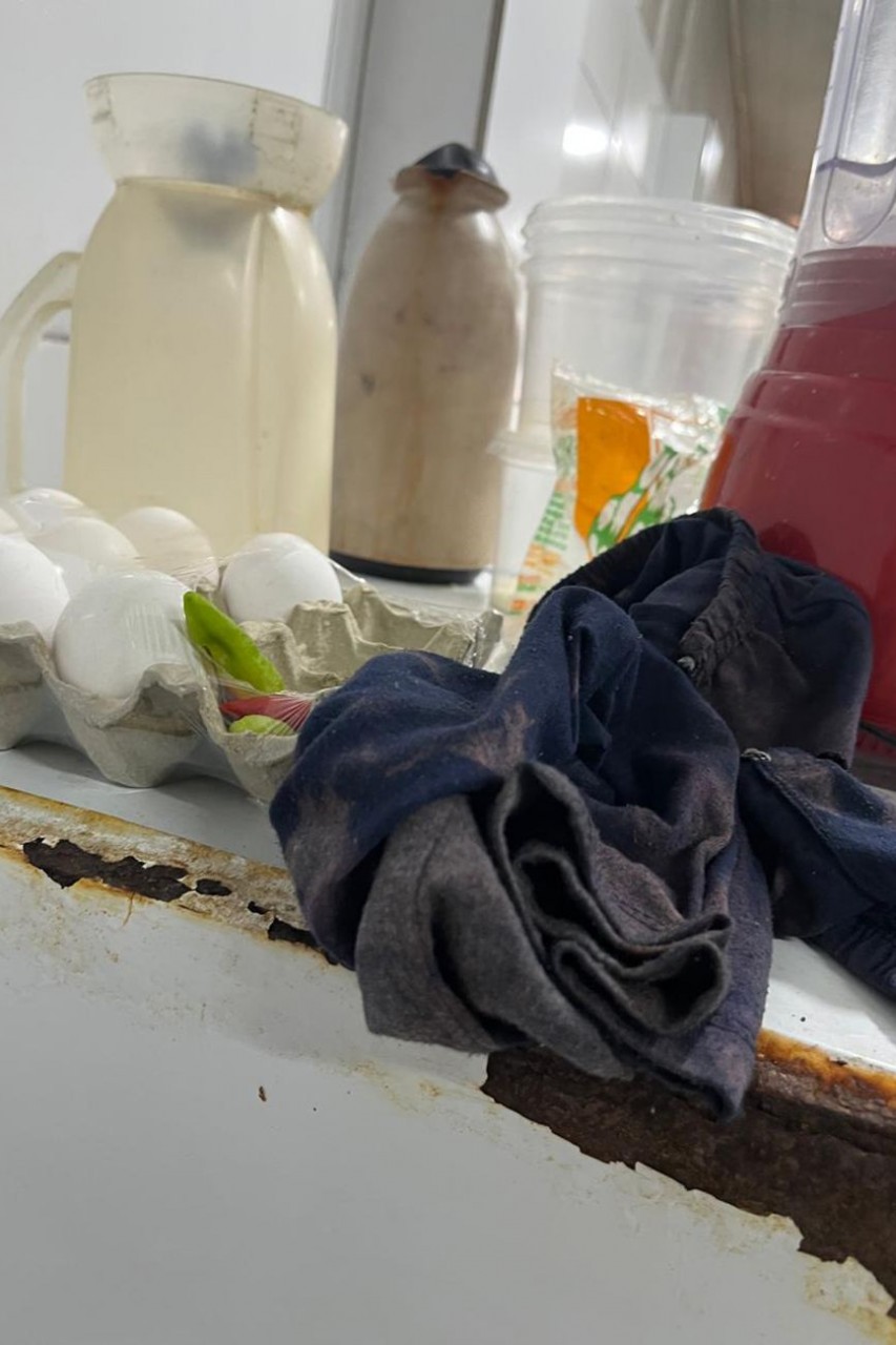 Entre as irregularidades encontradas estão o armazenamento inadequado de alimentos, estrutura física comprometida, além de equipamentos e eletrodomésticos em estado precário, sem a manutenção necessária. A fiscalização também constatou falta de higiene geral no ambiente e a presença de colaborador manipulando alimentos sem o uso de uniforme e calçado adequados, o que contraria a legislação sanitária.