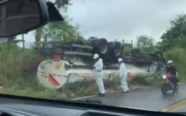 De acordo com a Polícia Rodoviária Federal (PRE), o veículo capotou após passar por uma curva. Não há detalhes do que possa ter causado o acidente. Parte do combustível ficou espalhado na vegetação.