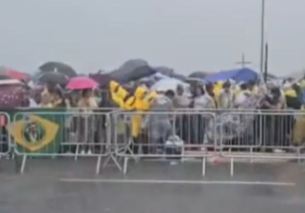 Os manifestantes estavam no local, sob forte chuva, à espera da chegada de outro grupo de apoiadores do ex-presidente Jair Bolsonaro, liderados pelo deputado federal Nikolas Ferreira (PL). Eles protestam contra a prisão de Bolsonaro e os demais envolvidos nos antidemocráticos de 8 de janeiro.