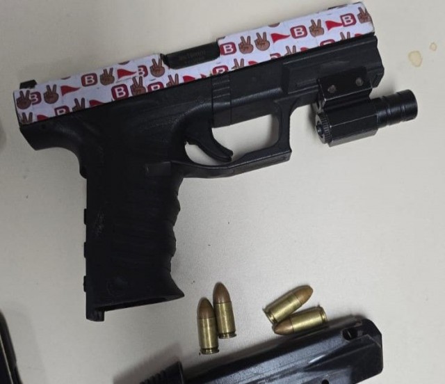 Durante a operação, foi apreendida uma pistola calibre 9mm, equipada com um alongador e uma mira a laser, além de quatro munições intactas. A pistola estava parcialmente coberta por um adesivo, que fazia alusão à facção criminosa Comando Vermelho (CV).