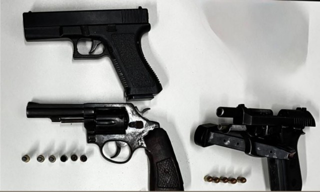 Material apreendido:- 1 pistola calibre .380, marca Taurus, com numeração suprimida, carregador e 5 munições;