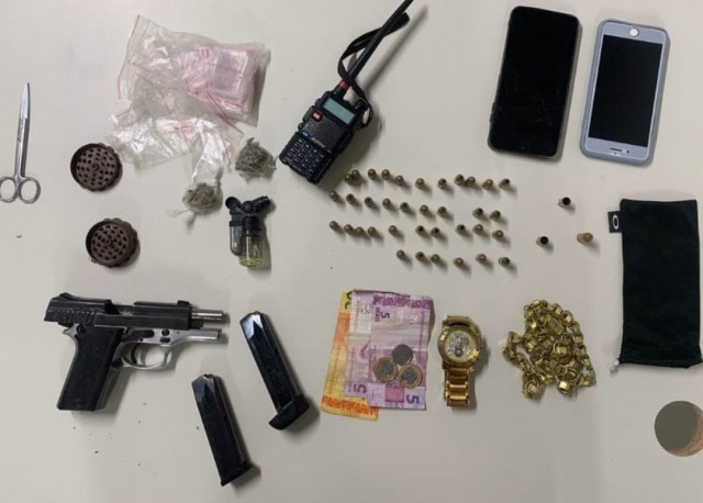 Mulher é presa com arma, munições e drogas no bairro Tomba em Feira de Santana