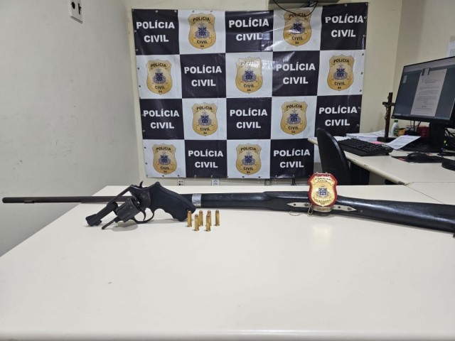 Diante da suspeita, a equipe policial se dirigiu ao imóvel dele, onde foram encontradas duas armas de fogo, sendo uma espingarda artesanal e outra garruncha artesanal.