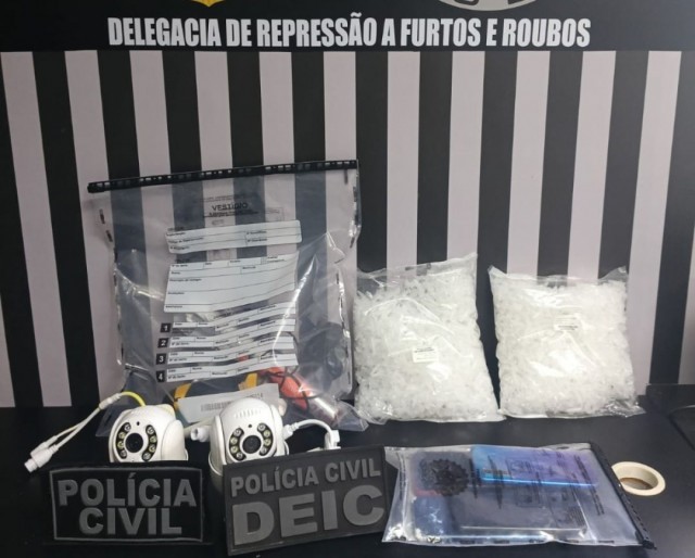 A ação policial resultou ainda na apreensão de duas câmeras de videomonitoramento, cinco aparelhos de telefonia móvel, estiletes, papel laminado e sacos plásticos, materiais utilizados no fracionamento e embalagem das drogas. No momento da incursão, nenhum indivíduo foi localizado dentro do imóvel.
