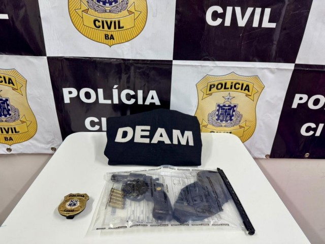 Na tarde de quarta-feira (29), investigadores da Delegacia Especial de Atendimento à Mulher (Deam/Feira de Santana) prenderam em flagrante um homem por porte ilegal de arma de fogo com numeração suprimida. A prisão ocorreu durante diligências para localizar o autor de ameaças e descumprimento de medida protetiva contra sua ex-companheira.
