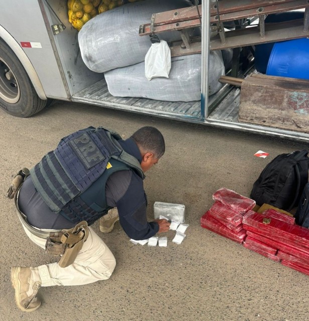 A Polícia Rodoviária Federal (PRF) apreendeu, na manhã desta quarta-feira (4), 23kg de drogas, durante fiscalização a veículo de transporte de passageiros, no posto da BR-116 sul. O material entorpecente foi localizado em um ônibus de turismo que fazia o itinerário São Paulo/SP – Araci/BA.