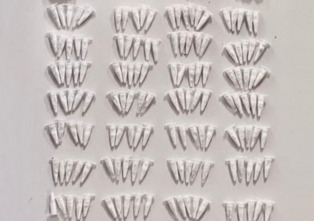 Durante a revista pessoal, os militares encontraram um porta-óculos contendo os 148 pinos de cocaína, além de objetos pessoais e uma pequena quantia em dinheiro.