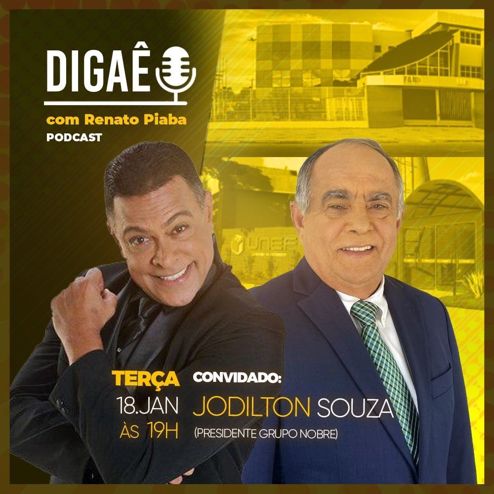 Para o pontapé inicial do DIGAÊ, Piaba irá entrevistar o empresário Jodilton Souza, presidente do Grupo Nobre da Bahia, e amigo pessoal de Renato há mais de três décadas. Com mais de 10 empresas, o Grupo Nobre se destaca em Feira de Santana, há mais de 40 anos. Atualmente, o Grupo Nobre da Bahia impulsiona a economia baiana nos mais diversos ramos: Educação, Saúde, Esporte, Entretenimento e Agropecuária.